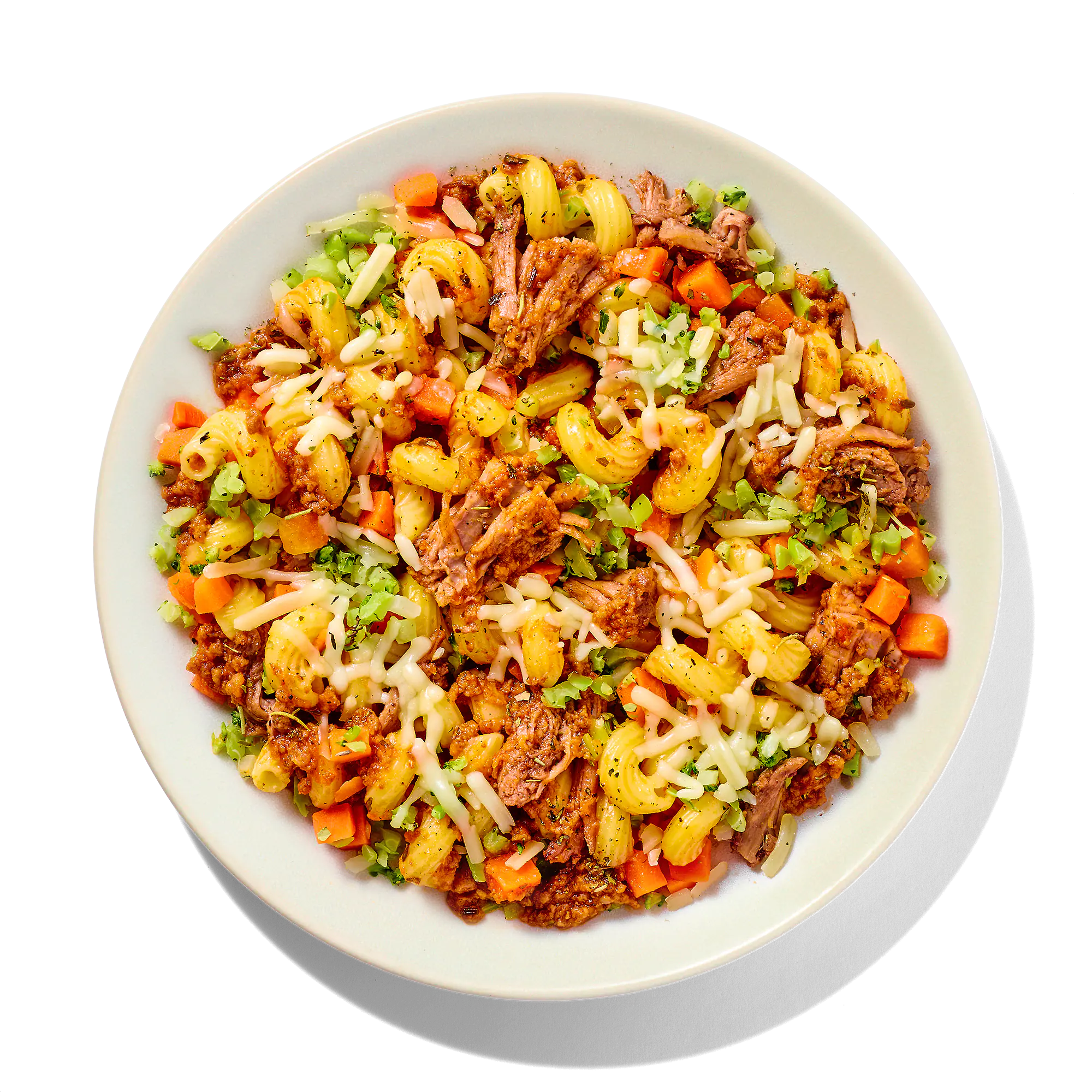 COOKED ENRICHED CAVATAPPI PASTA (ENRICHED SEMOLINA [DURUM WHEAT SEMOLINA, NIACIN, FERROUS SULFATE, THIAMIN MONONITRATE, RIBOFLAVIN, FOLIC ACID], WATER), BOLOGNESE SAUCE (CRUSHED TOMATOES [TOMATOES, SALT], GROUND BEEF, WATER, ONIONS, TOMATO PASTE [TOMATOES], GARLIC, SOY SAUCE [WATER, SOYBEANS, SALT, SUGAR, ALCOHOL, VINEGAR, LACTIC ACID], BALSAMIC VINEGAR [WINE VINEGAR, GRAPE MUST, CONTAINS SULFITES], RICE STARCH, EXTRA VIRGIN OLIVE OIL, SEA SALT, SEASONING [OREGANO, MARJORAM, THYME, SAGE, ROSEMARY], YEAST FLAKES [INACTIVE DRY YEAST, NIACIN, PYRIDOXINE HYDROCHLORIDE, THIAMIN HYDROCHLORIDE, RIBOFLAVIN, FOLIC ACID, CYANOCOBALAMIN {VITAMIN B12}], BLACK PEPPER, GARLIC POWDER [CONTAINS SULFITES], CHILI FLAKES), RICED BROCCOLI (BROCCOLI), CARROTS, COOKED PULLED BEEF (BEEF LIFTER MEAT), ITALIAN-STYLE SHREDDED CHEESE BLEND (MOZZARELLA, PARMESAN, ASIAGO, MONTAMORE, AND FONTINA CHEESES [PASTEURIZED MILK, CHEESE CULTURES, SALT, ENZYMES], POWDERED CELLULOSE [TO PREVENT CAKING]), SEASONING BLEND (ROSEMARY, OREGANO, BASIL, MARJORAM, THYME).