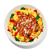INGREDIENTS: SCRAMBLED EGG WHITES (EGG WHITES, WHOLE MILK, CORN STARCH, SEA SALT, ANNATTO COLOR, WHITE PEPPER), SCRAMBLED EGGS (WHOLE EGGS, WHOLE MILK, CORN STARCH, SEA SALT, GROUND WHITE PEPPER), COOKED WHITE KIDNEY BEANS, SWEET POTATOES, AROMATICS (ONIONS, GARLIC, RED BELL PEPPERS, OLIVE OIL, CILANTRO, SPICE, WATER, TOMATO PASTE, PAPRIKA [COLOR], CONTAINS 2% OR LESS OF BUTTER [SWEET CREAM, LACTIC ACID], SALT, CITRIC ACID, GUAR GUM, XANTHAN GUM), SPINACH, ROASTED RED BELL PEPPERS, FETA CHEESE (FETA CHEESE [PASTEURIZED MILK, SALT, CHEESE CULTURES, ENZYMES], POTATO STARCH [TO PREVENT CAKING]), HARISSA (DRIED CHILI PEPPERS, LEMON JUICE, GARLIC, OLIVE OIL, CORIANDER SEEDS, CUMIN, SALT).