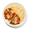 BROWN RICE + SOUTHWEST-STYLE CORN SALSA + PULLED PORK + GUAJILLO CHILE PEPPER SAUCE + SHREDDED JACK CHEESE + CORN TORTILLA