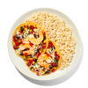 BROWN RICE + SOUTHWEST-STYLE CORN SALSA + SHRIMP + GUAJILLO CHILE PEPPER SAUCE + SHREDDED JACK CHEESE + CORN TORTILLA